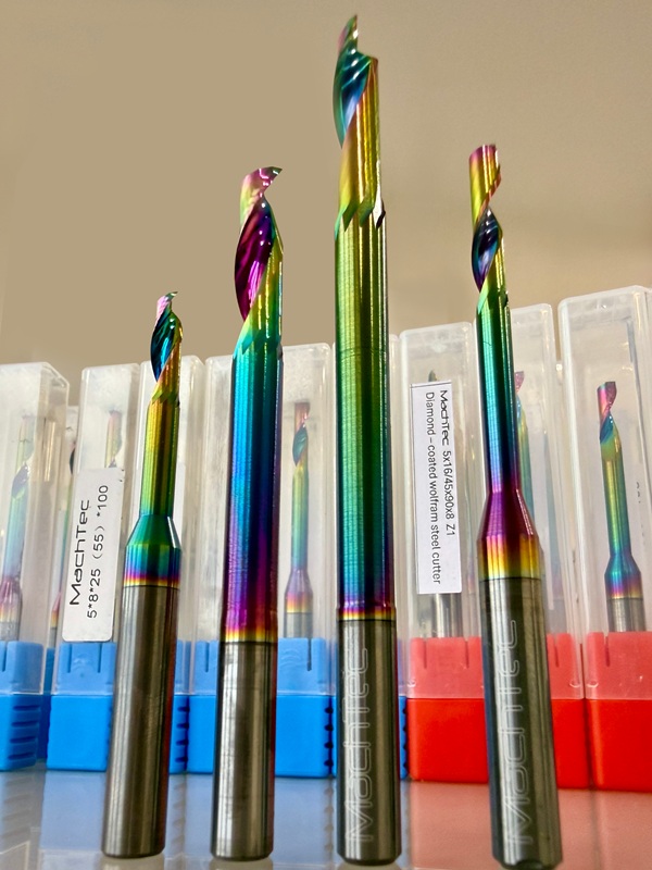 Високоустойчив фрезов инструмент, произведен от твърдосплавен материал (волфрамов карбид), върху който е нанесено DLC (Diamond-Like Carbon) покритие - тънък слой, наподобяващ свойствата на диамант. Покритието осигурява изключително ниско триене, висока износоустойчивост и значително удължен експлоатационен живот на инструмента.