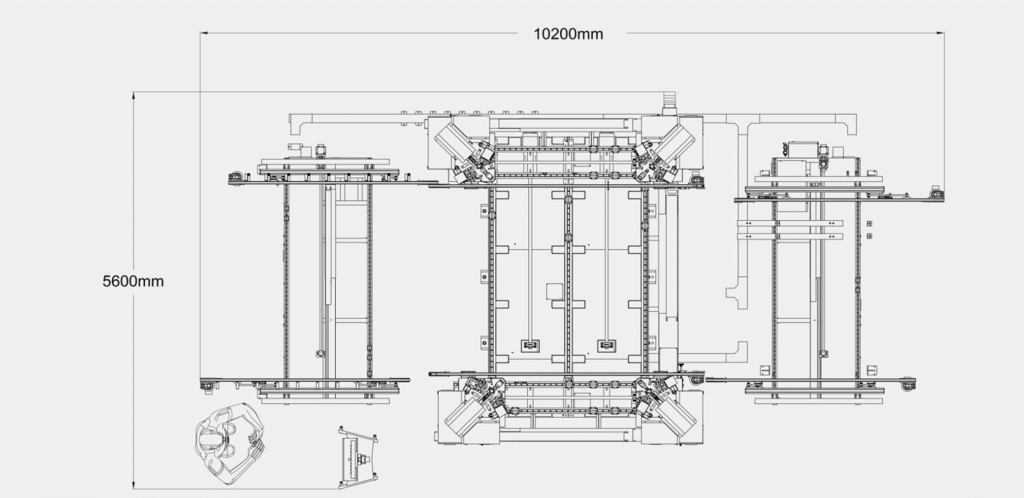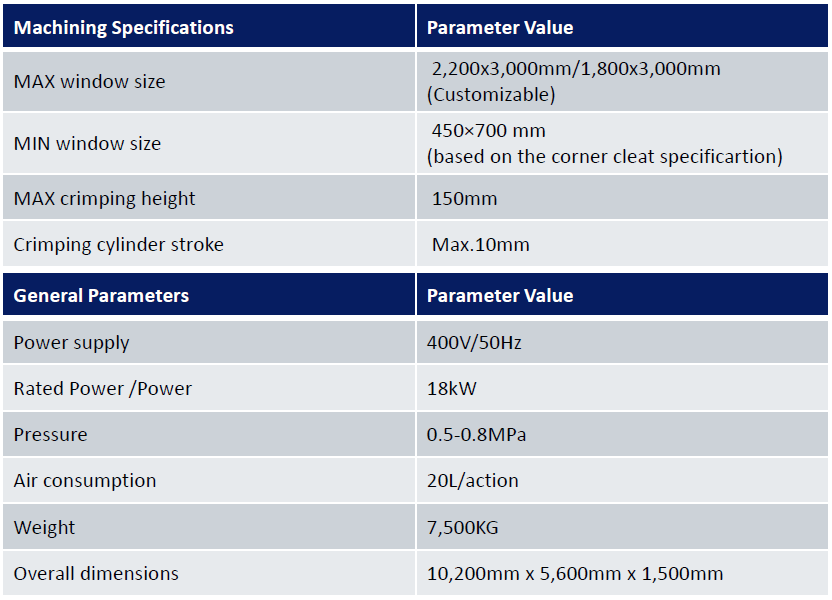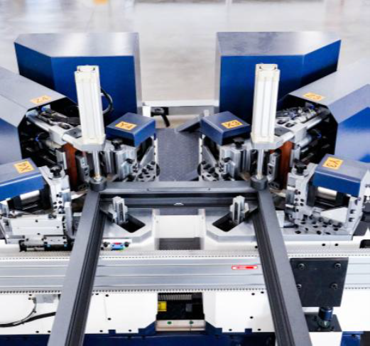 Интелигентната производствена линия за сбиване на ъгли на алуминиеви профили за врати и прозорци извършва съединяването на всички четири ъгъла на вратата/прозореца едновременно.